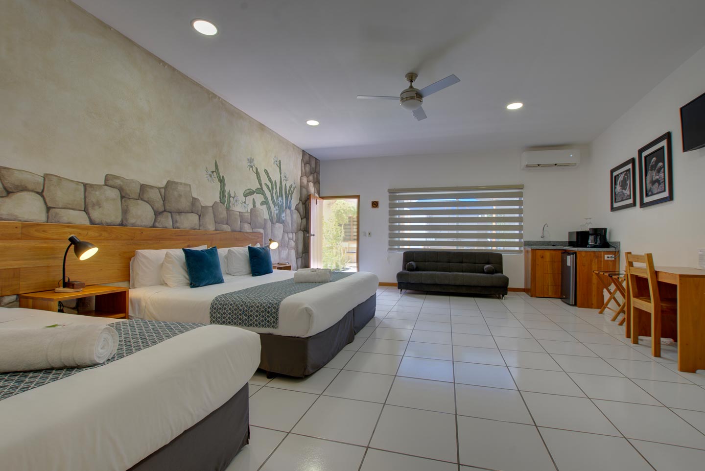 Comfortable rooms that can accommodate up to three people. All rooms have internet access, televisions, air conditioning and a small refrigerator.